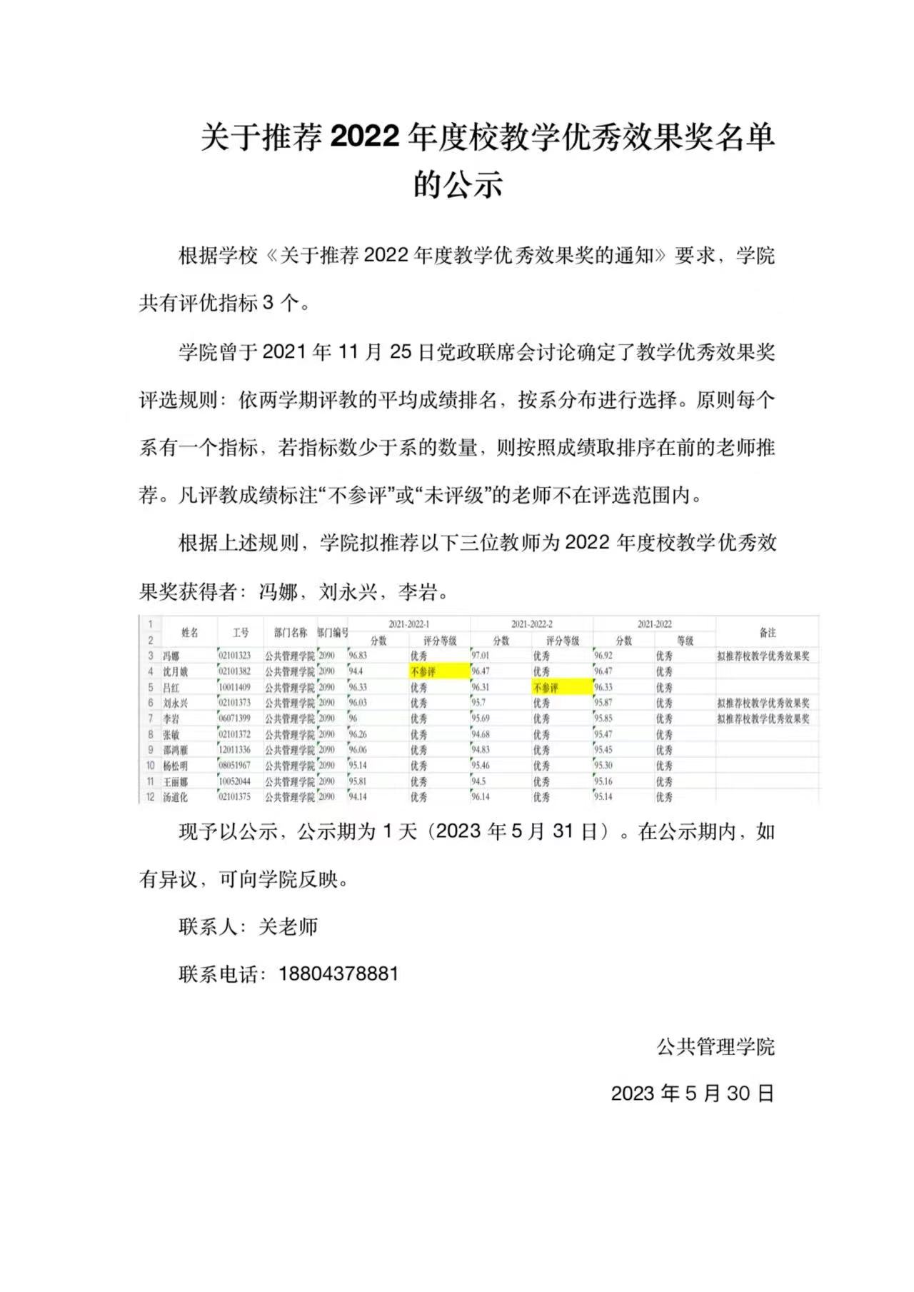 爱爱啦 关于推荐2022年度校教学优秀效果奖名单公示