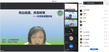主办,社会工作专业承办,以线上会议的形式进行展开,不仅吸引了本院内的师生积极参加,还得到了其他学院同学的广泛关注,更受到了长春市社会工作者协会的关注和宣传。活动以优势视角理论为指导,挖掘大学生应对重大突发公共事件的潜能和抗挫折能力,让学生们学会从自己及身边挖掘问题,运用社会工作理论分析问题,同时运用社会工作方法与技巧反思自我并解决实际问题。现场的师生在线互动,在沙龙上参会的同学可以随时向嘉宾和老师提出相关问题,嘉宾和老师们及时为同学们在线解答。通过主持人与访谈嘉宾、特约嘉宾的交流,让大家在疫情封控期间的压力和焦虑得到了缓解。