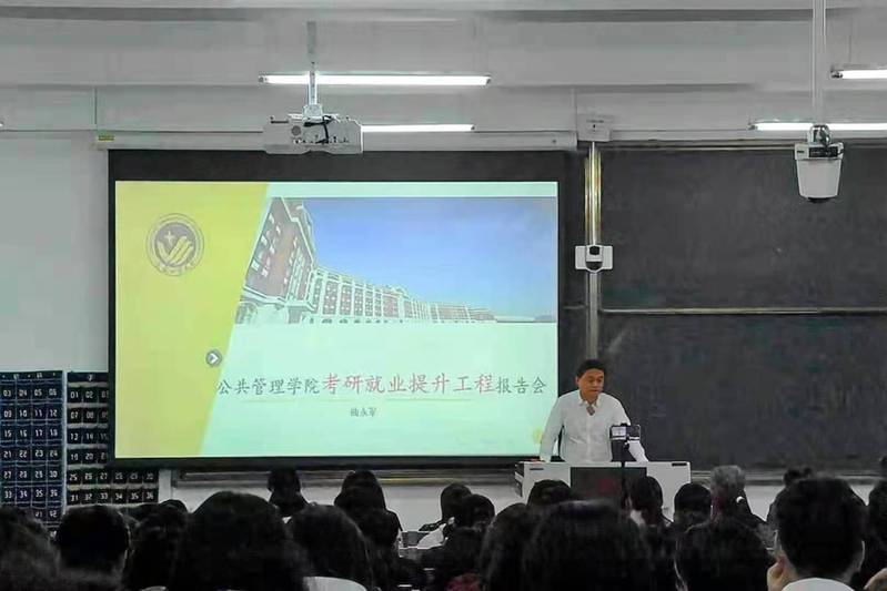 学院网讯(通讯员:叶兴旺)5月8日,学院院长曲永军通过现场和网络直播的方式向学院18级和19级的全体同学做了考研和就业提升质量工程报告,报告会由王越副书记主持,学院副院长吕红、各系主任和书记、两办人员参会。