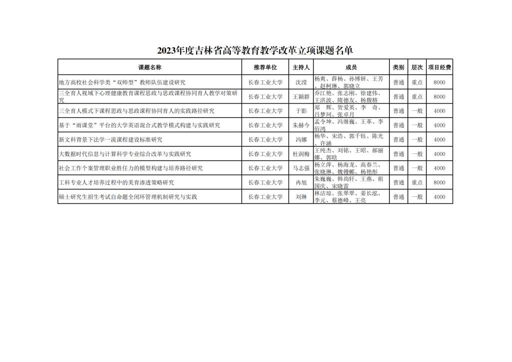 爱爱啦 -2023年度吉林省高等教育教学改革立项课题名单