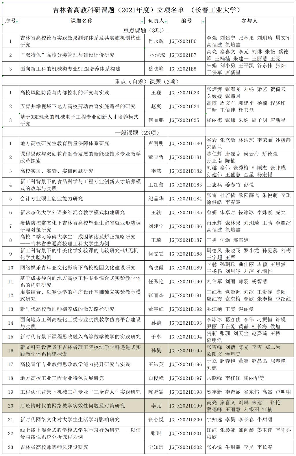 吉林省高教科研课题2021年度立项名单_重点