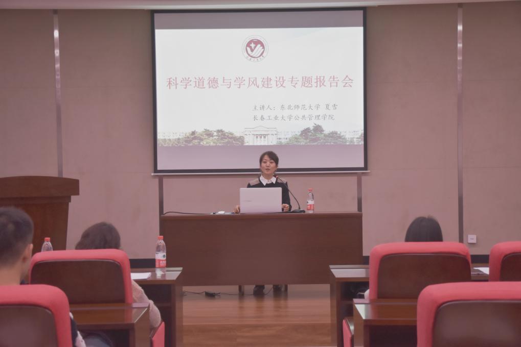东北师范大学教育学部教育管理学院教授、博士生导师夏雪老师作了题为“加强研究生科学道德和学风建设”的专题报告。从科学道德和学风建设“是什么”、“为什么”以及“如何加强”三个方面展开,通过科研不端行为案例,批出了加强科学道德和学风建设对于进一步树立科研诚信意识、提高科学道德素养、形成求真务实的优良学风的重要意义。