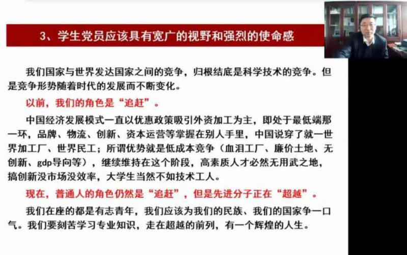 在培训因疫情原因,本次培训采取了线上集中学习的方式,同学们通过集中培训、专题片教学和分组讨论等形式完成了学习任务,但大家意识到要成为一名真正的党员还有很长的路要走,必须不断加强学习,提高党性修养,提升思想觉悟。