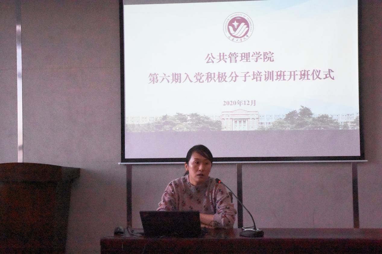 1211日,第六期入党积极分子培训班开班仪式圆满完成,由学生党支部书记赵君老师担任主讲人,党委副书记王越老师、团委书记陈磊老师、18级辅导员别克老师出席本次活动。