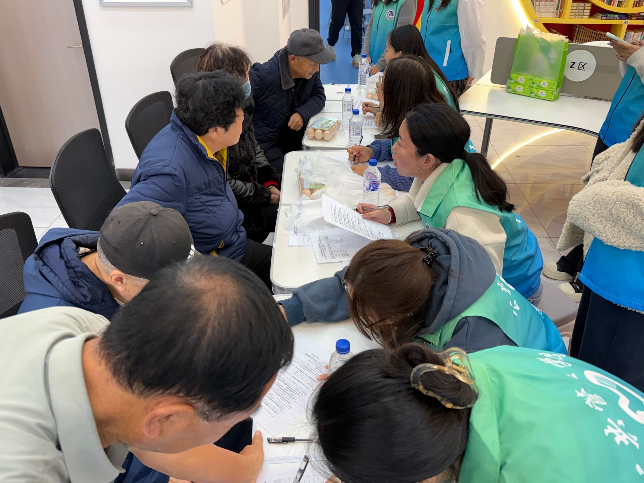 在社区活动中心组织了基层治理问卷调研,党员们采用一对一问答模式,协助老年人完成《居民需求调研问卷》,并送上水杯、纸抽等纪念品,问卷涉及“社区公共设施满意度”“文化活动需求”“生活服务诉求”等问题,确保每位老人的意见都能准确反馈。此次调研共回收有效问卷106份,60岁以上老年受访者占比达83%,累计收集加装楼道扶手、开设智能手机培训班、增加医疗义诊频次等民生诉求42条,为后续社区服务优化升级提供了详实的数据支撑,真正实现问需于民、靶向服务。