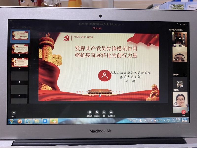 法学系党支部于2020年6月24日组织了题为《发挥共产党员先锋模范作用 把抗疫奇迹转化为前行力量》的专题党课。