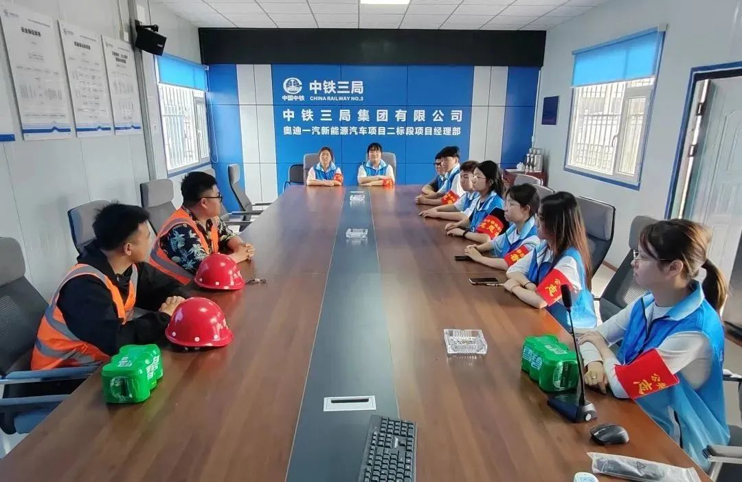 实践团成员赴长春市中铁三局参观。中铁三局工作人员热情接待了参观一行人员,并带领大家到施工现场进行了参观学习。工作人员在施工现场对项目施工的进度、技术要点、施工流程等情况向同学们们进行了详细的讲解,实践团成员们感受到了中铁三局严格、认真、高标准的工作精神和要求。
