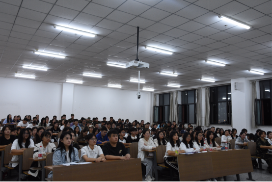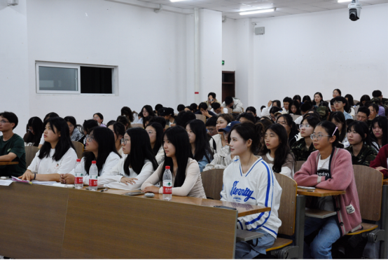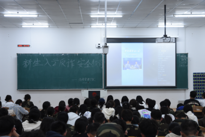 2024级新生在北湖西校区东阶204共同观看由公安部刑侦局、国家反诈中心举办的“开学反诈第一课”直播。