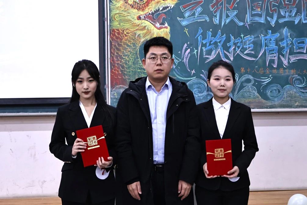 王欣月同学凭借出色的主持技巧和独特的个人魅力,成功晋级我校决赛。在决赛中,王欣月同学面对来自各学院的优秀选手和在场的评委、观众,展现出扎实的主持功底和应变能力。无论是自我介绍时的娓娓道来,还是即兴主持时的机智应变,都赢得了评委和观众的阵阵掌声与高度赞誉。