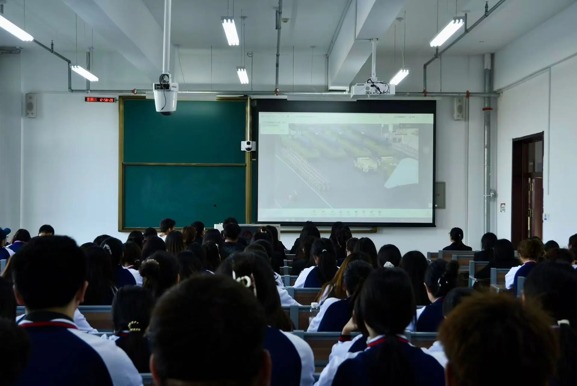随着阅兵的进行,各类方队依次精彩亮相。现代化的装备方队、翱翔天际的空中梯队,无一不彰显着我国国防力量的飞速发展。同学们被受阅部队的威武雄姿和先进的武器装备所震撼,每当看到新型装备登场,都会发出热烈的掌声和赞叹声。同学们纷纷表示,看到这些先进的武器装备,深刻感受到了祖国的强大,也更加明白了和平的来之不易。