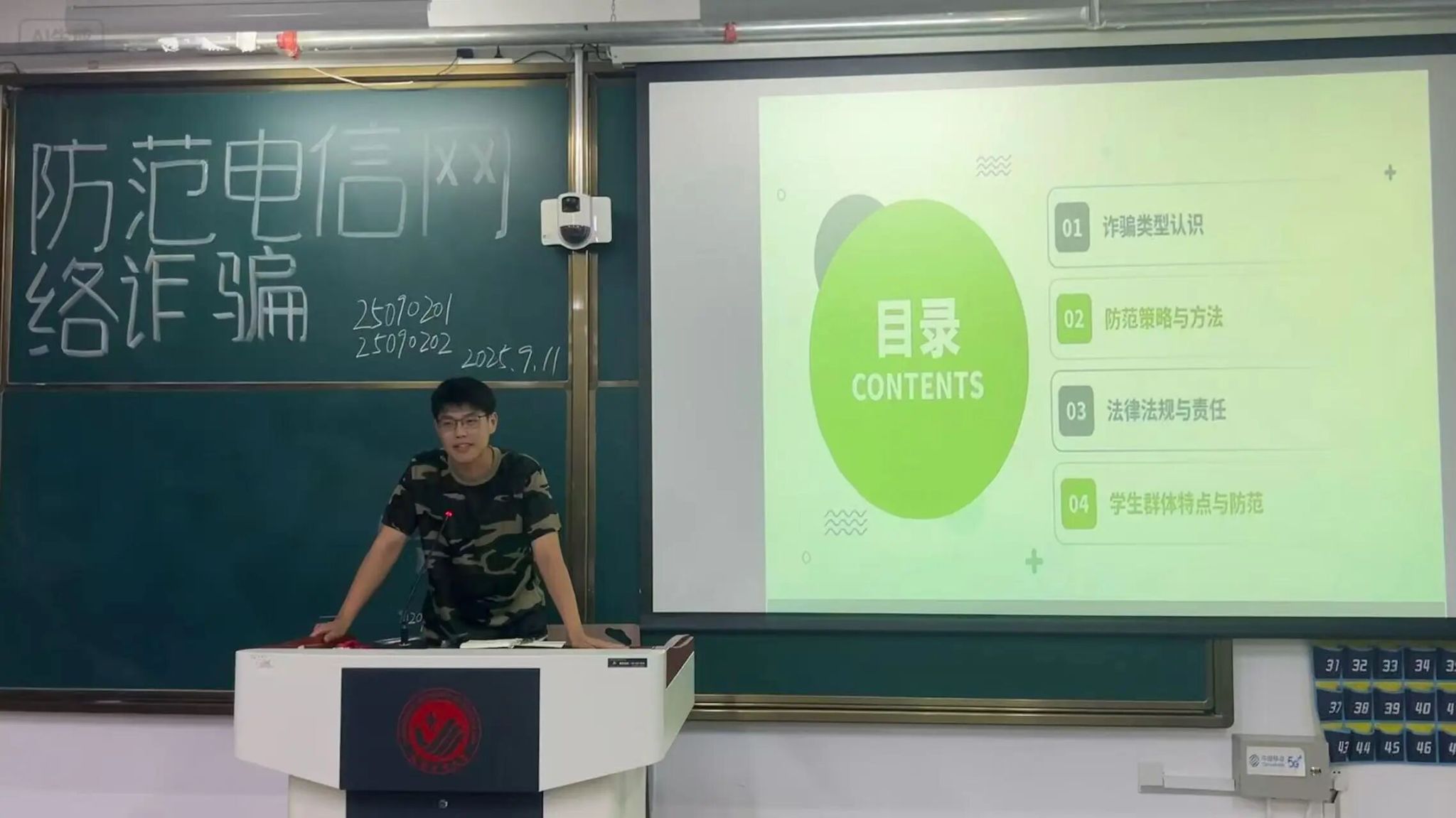 于北湖东校区主楼201等教室组织2025级各班有序开展新生防范电信网络诈骗专题学习活动。