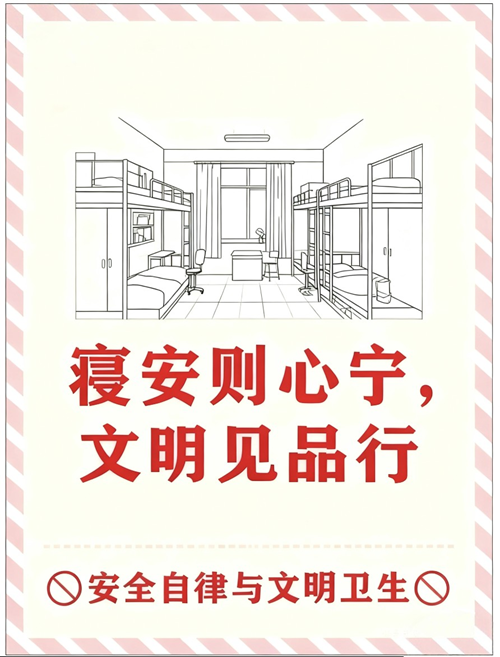 开展以“安全‘零’死角,寝室‘爱’环绕”为主题的寝室安全月活动。本次活动围绕寝室安全卫生联合检查评比、组织寝室文明标语创意征集、实施“周度文明寝室”流动评选三大活动组织开展。