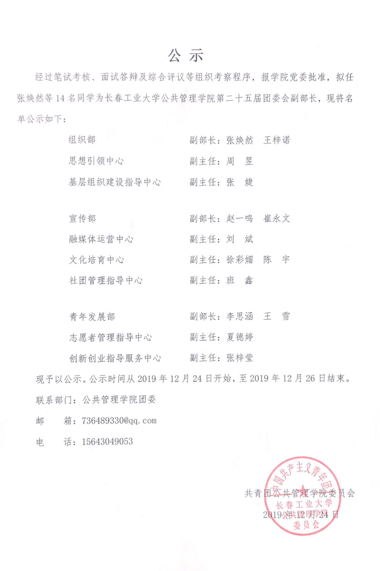 爱爱啦 爱爱啦 第二十五届团委会干部名单公示