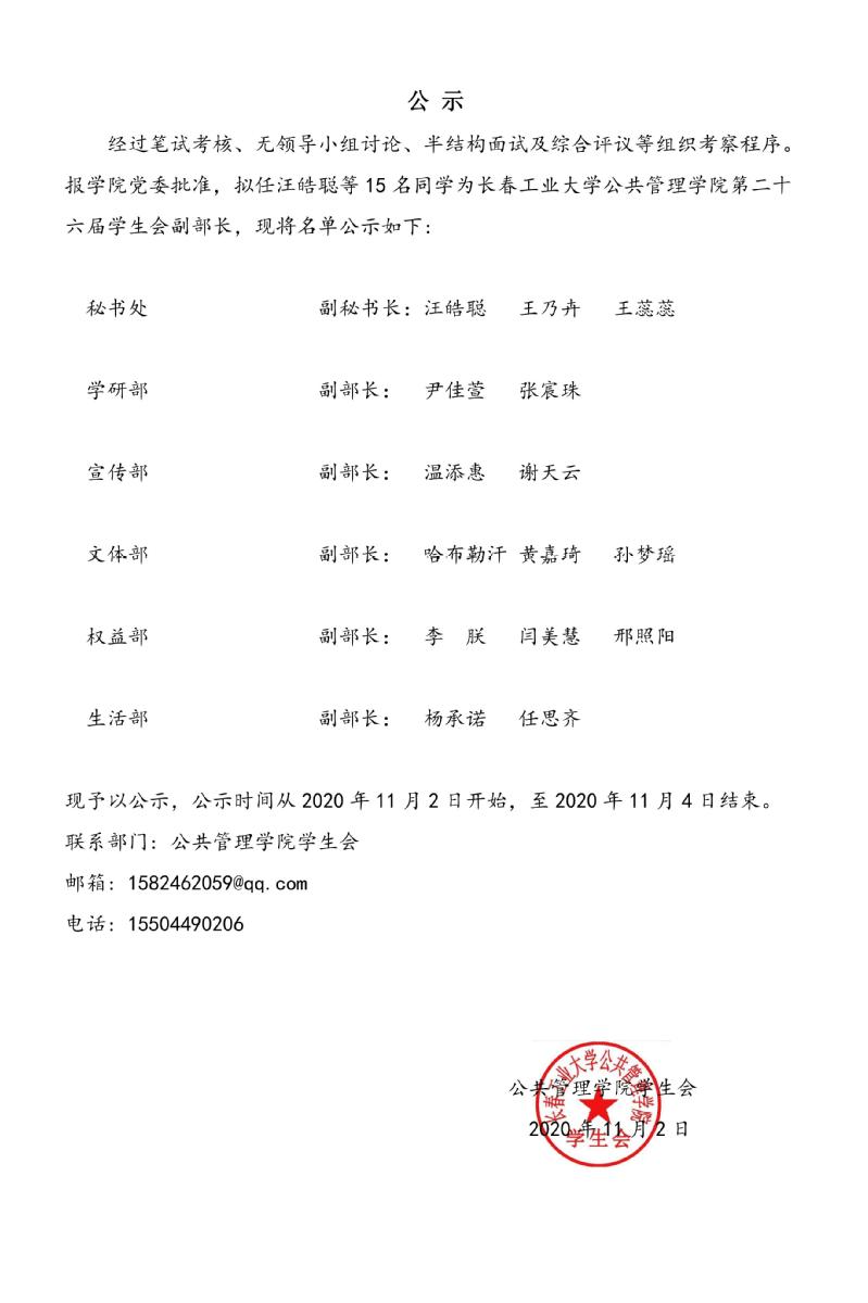 爱爱啦 爱爱啦 第二十六届学生会学生干部名单公示