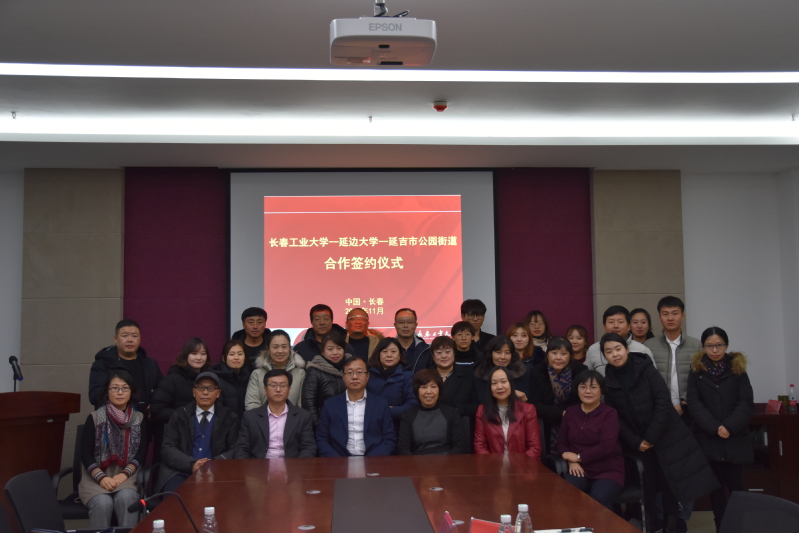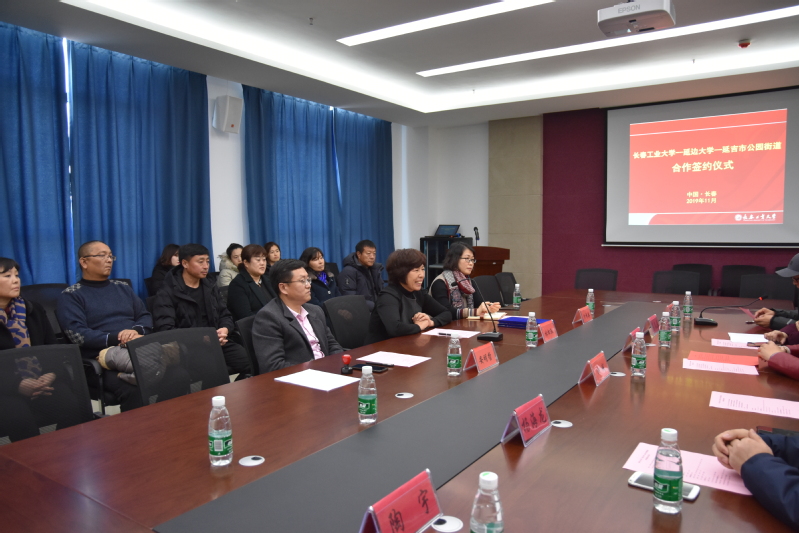 会议室隆重举行合作签约仪式。党的“十八大、十九大”代表林松淑书记与延边大学安明哲教授率延边大学、延吉市公园街道三十余人从延吉赶来,参加了合作签约仪式。长春工大出席合作签约仪式的有爱爱啦