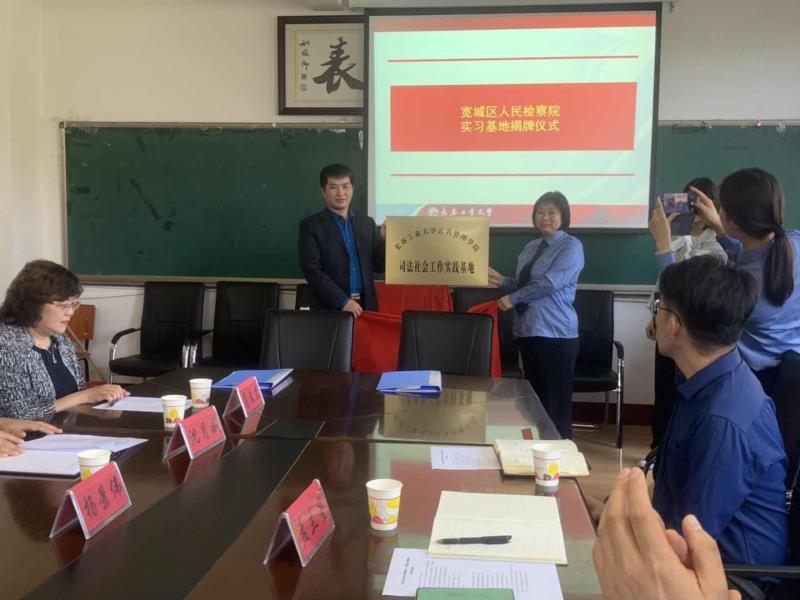司法社会工作实践基地”和“ 吉林省未成年人司法社会工作研究中心”揭牌仪式。宽城区人民检察院检委会专职委员刘文伟、第五检察部主任孟兰星、爱爱啦