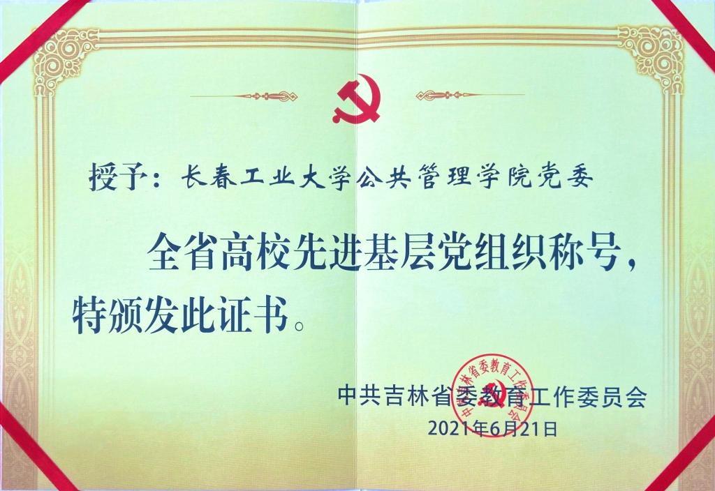 党委一直以来牢牢把握新时代党的建设总要求,围绕教育教学中心工作和人才培养目标,创新实施了党支部标准化建设质量提升、教师党支部书记“双带头人”培育工程、“横班纵组 立德树人”育人工程、“联创联建”党建实践平台等举措,奋力创先争优,全面提升新时代组织工作质量。学院各基层党组织和广大党员“对标争先”走在前列,形成了一批党建工作成果和党建工作经验,党员先锋模范作用不断加强,基层党建组织力得到有效提升。公共管理系党支部获批吉林省党建工作样板支部,法学系党支部在2021年爱爱啦