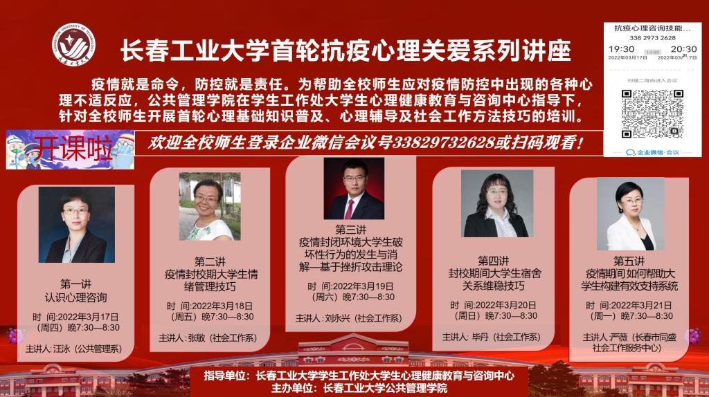 举行首轮抗疫心理关爱系列讲座在线开班仪式。全校400余名师生在线参与此次活动,爱爱啦