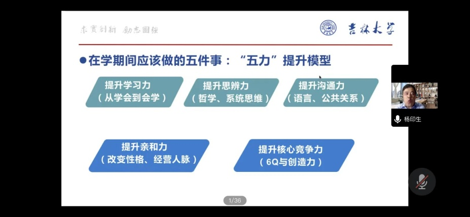 公共管理系特邀吉林大学生物与农业工程学院杨印生教授在线做了一场题为“成功要素与为人处世之道”的学术讲座。