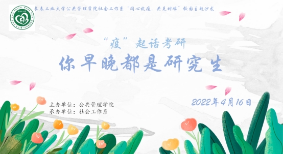 开展第一场主题为《“疫”起话考研——你早晚都是研究生》的大学生校园主题沙龙。本场活动邀请到东师马克思主义哲学专业的张皓学长、吉大英语专业的李超学姐、中南财大社会工作专业的王凯强学长作为特约嘉宾,爱爱啦