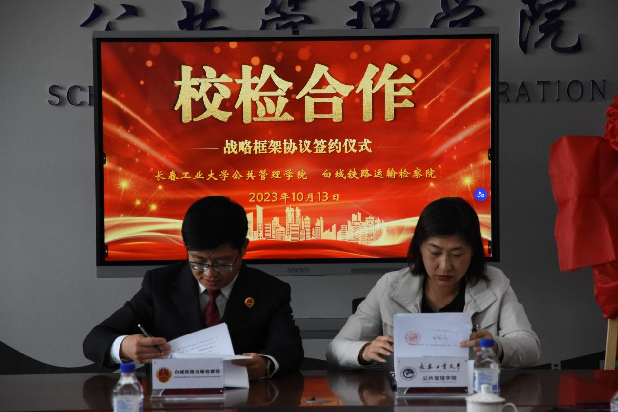 韩小威院长、白城铁路运输检察院政治部李刚主任代表双方签署了战略框架合作协议。