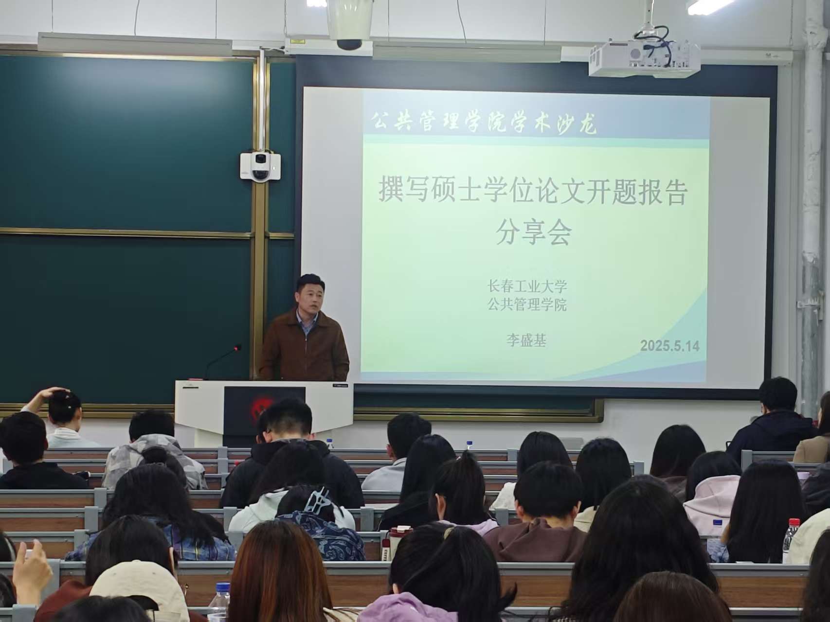 李盛基老师凭借丰富的学术研究与写作经验,以学术前辈的身份,深入浅出地为同学们讲解研究生撰写开题报告的关键要点。李老师从选题、研究背景与所要解决的主要问题、文献综述、研究内容、研究方法和创新点等七个方面展开详细讲述。在选题环节,李老师强调了选题的重要性,鼓励同学们从自身兴趣和专业前沿出发,寻找具有研究价值的课题;对于研究背景和主要问题,要深入分析,明确研究的必要性和实际意义;文献综述部分,指导同学们如何全面收集、梳理和分析前人的研究成果,为自己的研究奠定坚实基础;研究内容和研究方法的选择,则需要紧密围绕选题,选取具体可行的研究方法;而创新点的挖掘,更是为研究增添亮点,提升研究的价值。李老师的分享内容详实、条理清晰,为同学们在开题过程中可能遇到的问题提供了切实可行的解决方案,赢得了同学们的阵阵掌声。