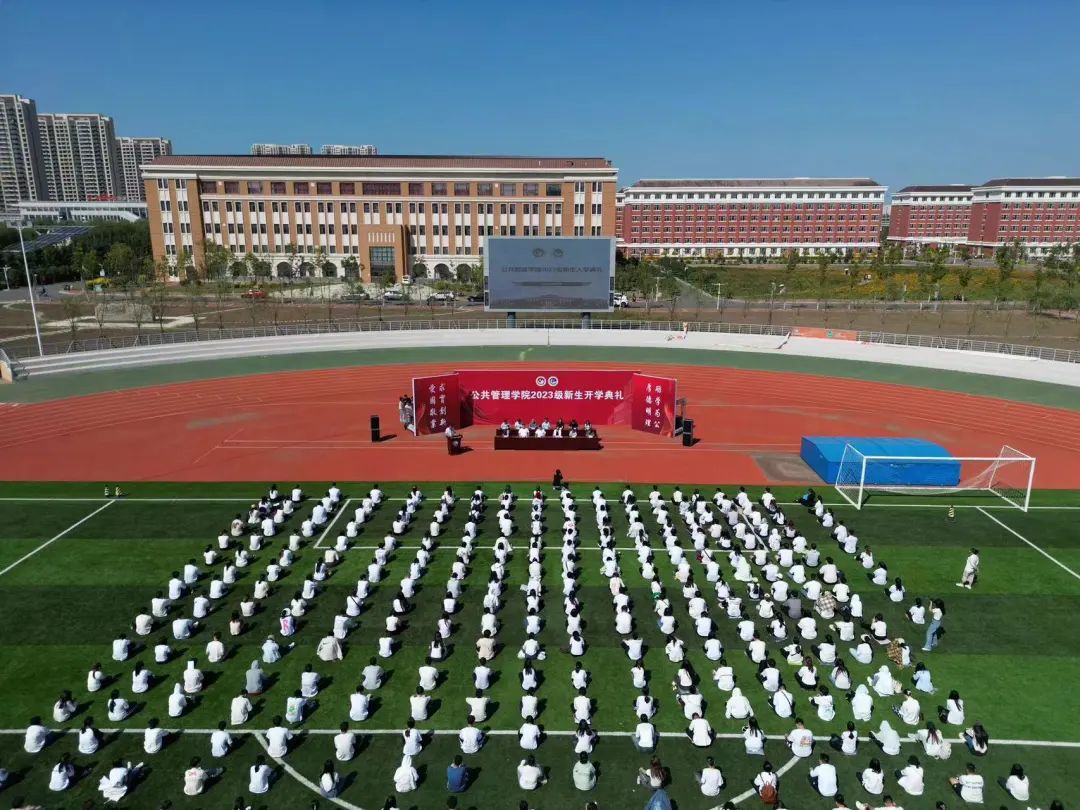 在北湖东区体育场举行2023级新生开学典礼。爱爱啦