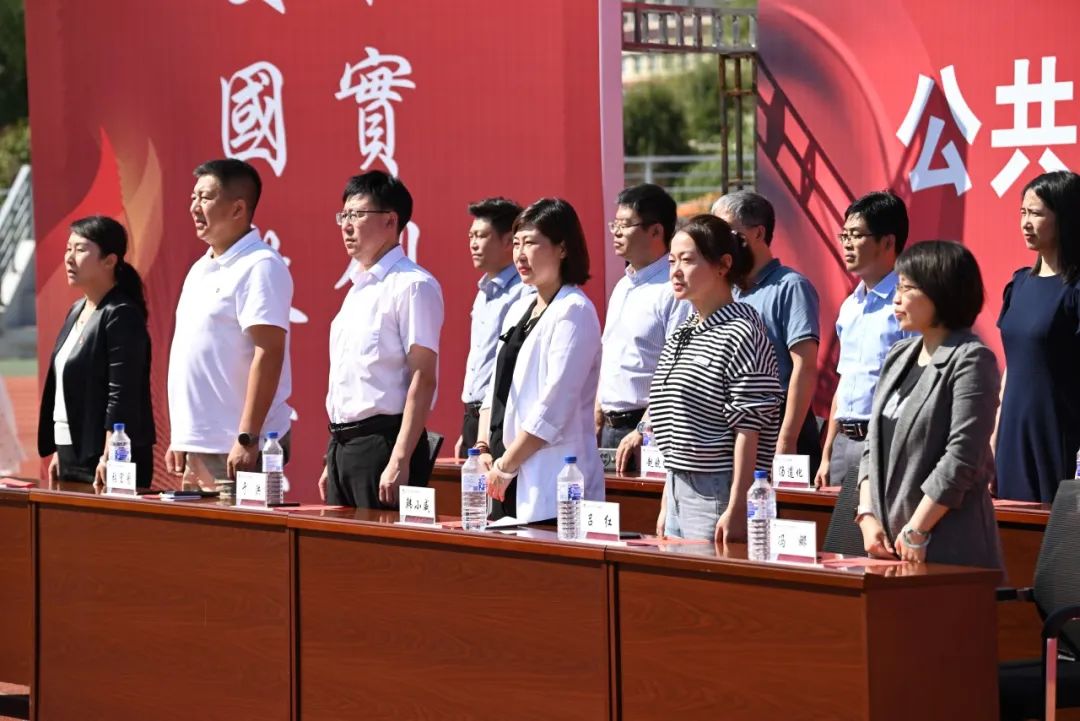 伴随着雄壮的《义勇军进行曲》,全体师生庄严肃立,以饱满的热情,昂扬向上的精神,高声齐唱中华人民共和国国歌,在响亮的国歌声中擂响了新学期的战鼓,开启了新的征程,向伟大的祖国致敬。