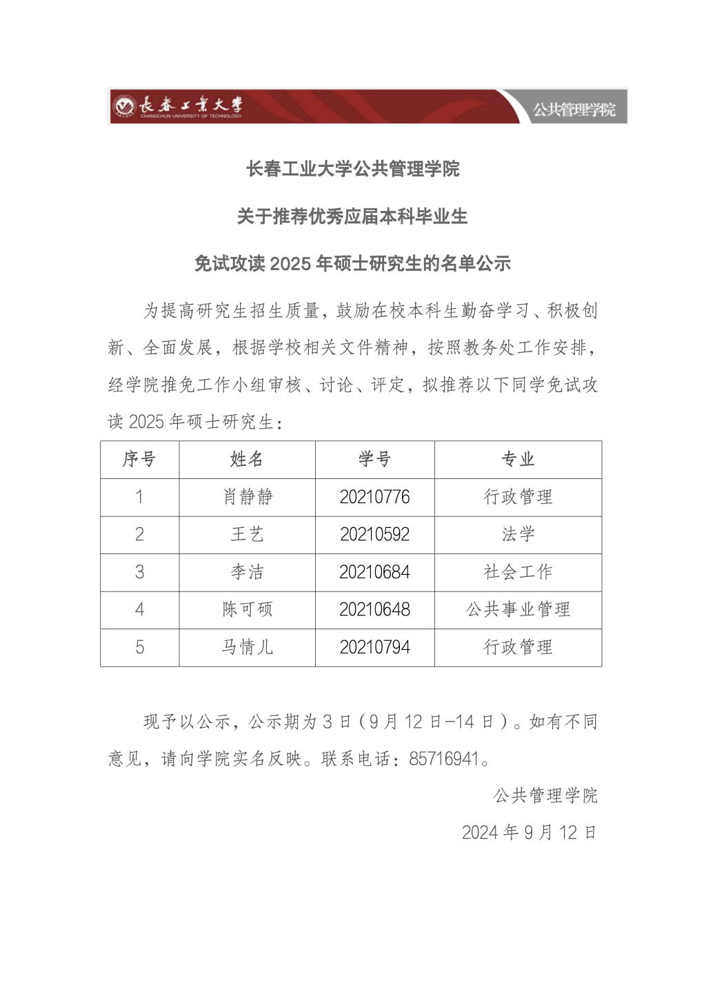爱爱啦 爱爱啦 关于推荐优秀应届本科毕业生免试攻读2025年硕士研究生的名单公示