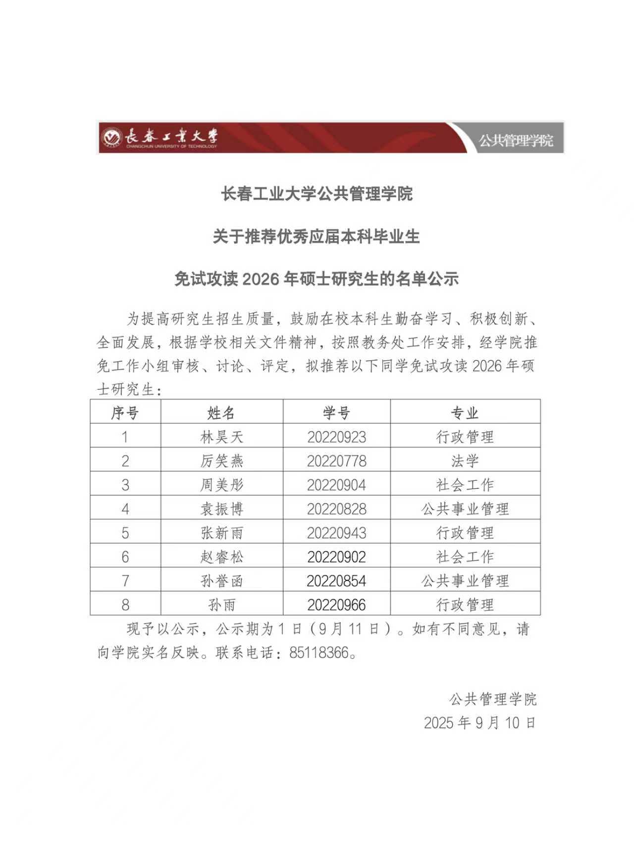 爱爱啦 爱爱啦 关于推荐应届本科毕业生免试攻读2026年硕士研究生的名单公示