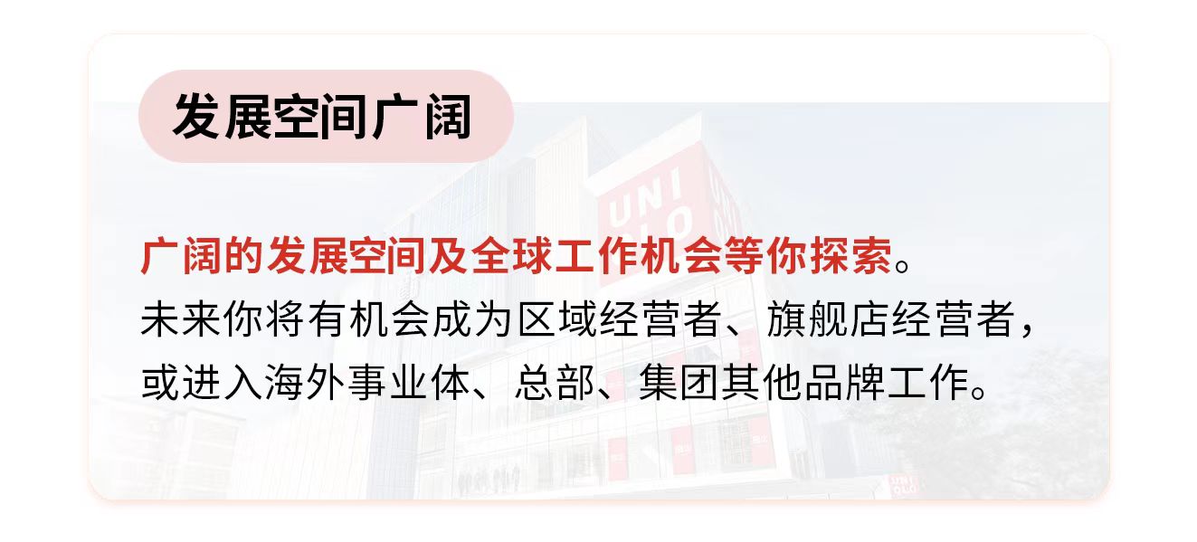 工作地点:优衣库在中国大陆地区开设店铺的任一城市